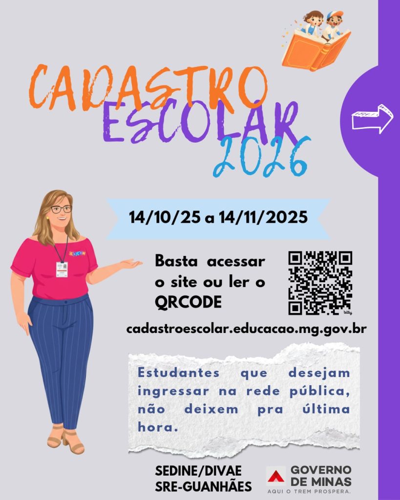 A SRE/Guanhães comunica que desde o dia 14 de outubro de 2025, estão abertas as inscrições de candidatos/estudantes no Sistema Único de Cadastro e Encaminhamento para Matrícula – SUCEM, referente ao ano letivo de 2026.